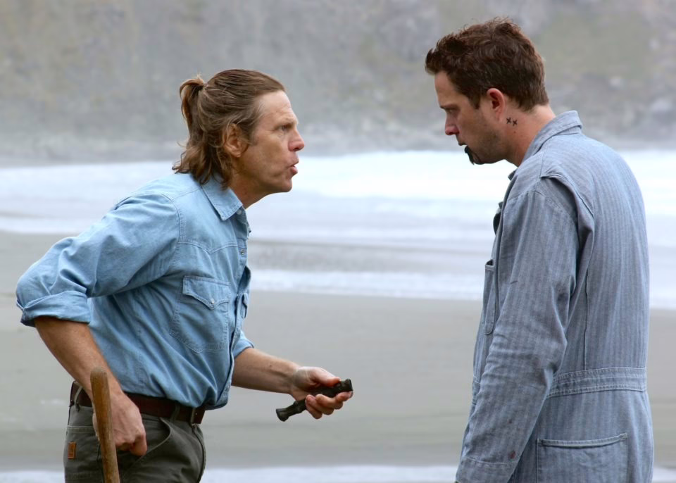 Sterling (Simon Templeman) terrorizes Bruce (Danforth Comins) on the Jefferson coast in BLACK ROAD.